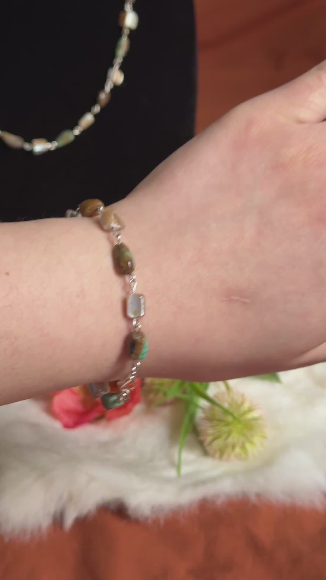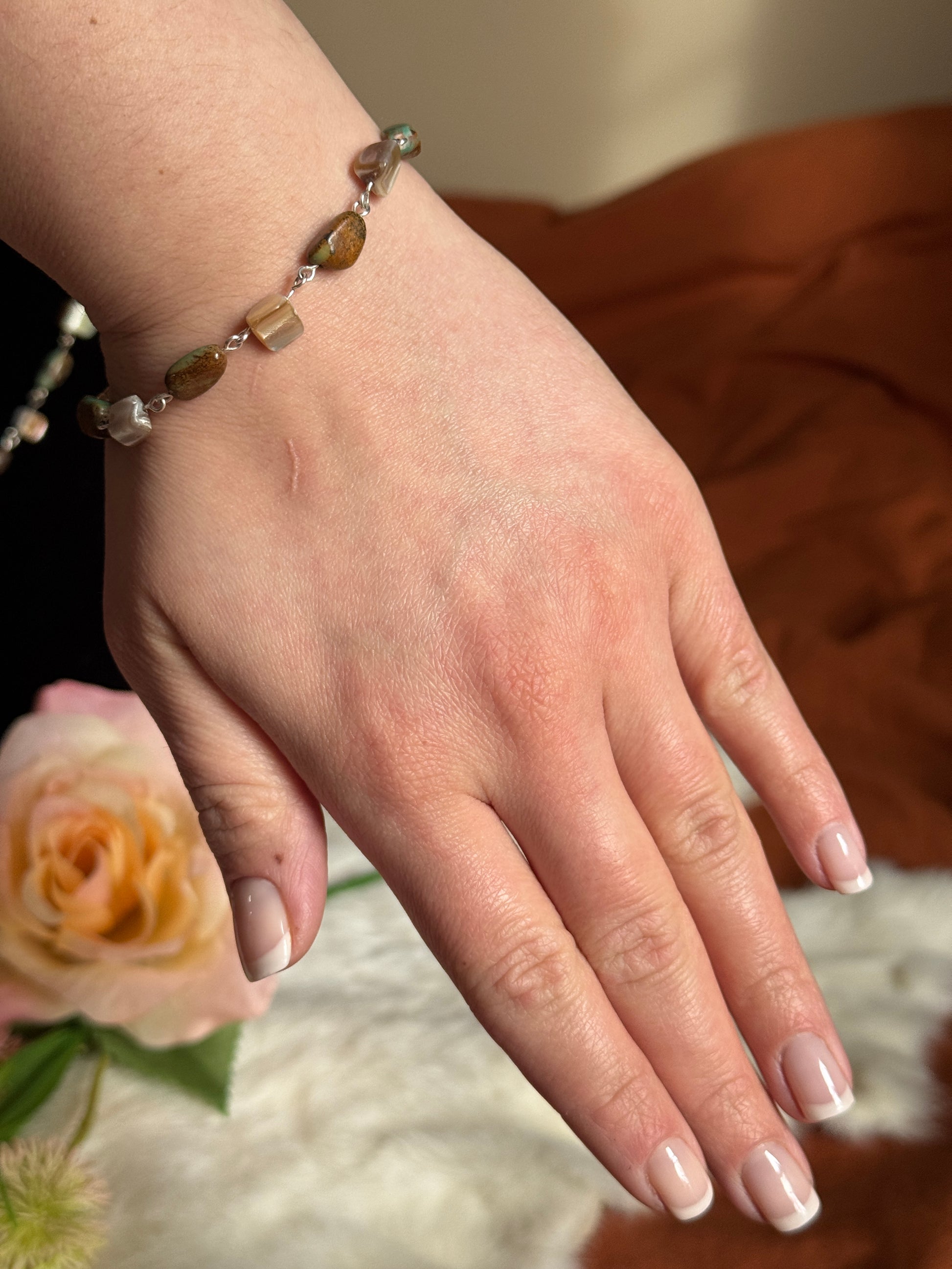 Handmade Turquoise and Mother of Pearl Bead Chain Bracelet. Matching Necklace available separately.