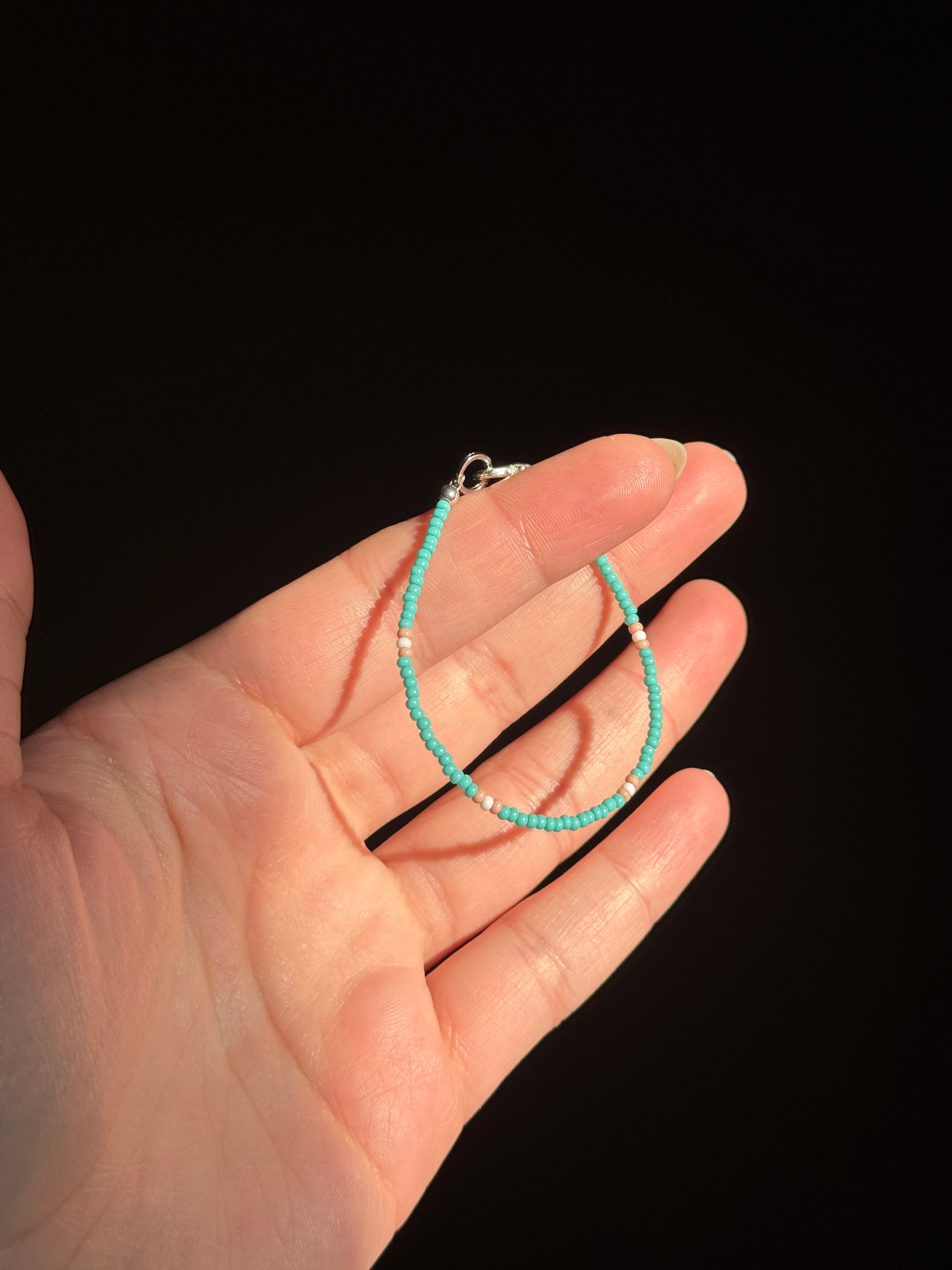 Turquoise and Pink Beaded Single Strand Child Size Bracelet